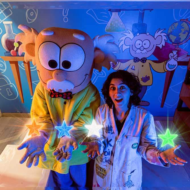 - المعامل: ورش وتجارب علمية عملية يشارك فيها الطفل بإيده.