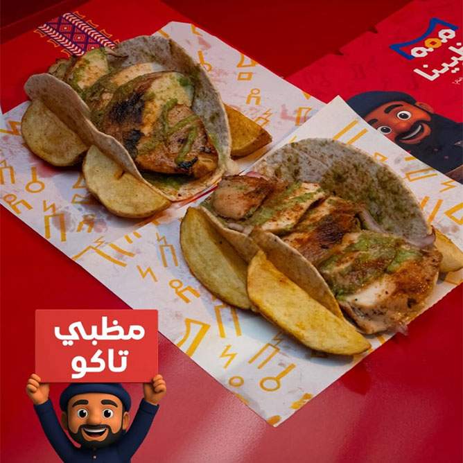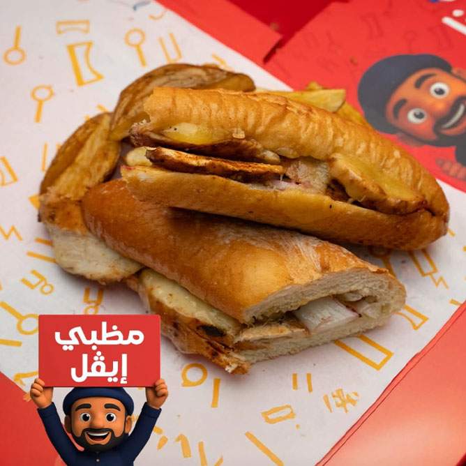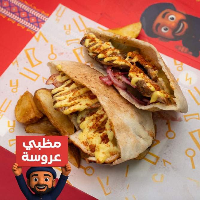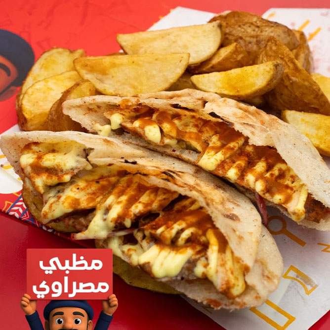 - ساندوتش بالاختيار بين (مظبي مصراوي - عروسة)، يُقدم مع بطاطس مظبينا + عصير بالاختيار بين (زبيب - كركديه).